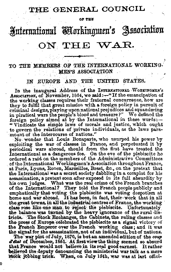 Manifesto on the Franco-Prussian War of the Brunswick Committee of the Social-Democratic Workers’ Party of Germany