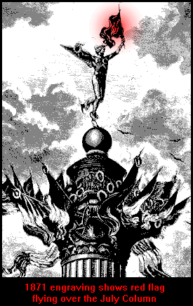 Red flag flying over the July Column in remembrance of the blood spilt by all workers who had been massacred nationally and internationally