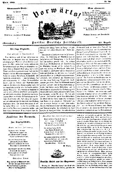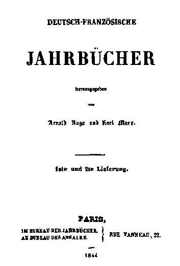 Letters from London (I-IV 379 Progress of Social Reform on the Continent 392 Progress of Communism in Germany. Persecution of the Communists in Switzerland 409 The Times on German Communism. To the Editor of the New Moral World 410 French Communism. To the Editor of the New Moral World 414 Continental Movements 415 The Press and the German Despots 417 Outlines of a Critique of Political Economy 418 The Condition of England. Past and Present by Thomas Carlyle, London, 1843 444 The Condition of England. I. The Eighteenth Century 469 The Condition of England. II. The English Constitution 489 Letter to the Editor of The Northern Star 514 The Situation in Prussia 515 News from Germany 517 Fate of a Traitor 519 Beer Riots in Bavaria 521 Parsonocracy in Prussia 523 News from St. Petersburg 524 The Civil War in the Valais 525 News from France 527 News from Prussia 530 Further Particulars of the Silesian Riots 532 Supplement Cola di Rienzi 537 Appendices Marriage Contract Between Karl Marx and Jenny von Westphalen 571 Extract from the Register of Marriages of the Registry Office of Bad Kreuznach for the Year 1843 575 Jenny Marx to Karl Marx, about June 21, 1844 575 Jenny Marx to Karl Marx, between August 4 and 10, 1844 580 Jenny Marx to Karl Marx, between August 11 and 18, 1844 581 Notes & Indexes Notes 587 Name Index 625 Index of Quoted and Mentioned Literature 6S9 Index of Periodicals 647 Subject Index 651 Illustrations A page from Marx's manuscript Contribution to the Critique of Hegel's Philosophy of Law 125 Cover of the Deutsch-Französische Jahrbücher 135 A page from issue No. 70 of Vorwarts!, carrying Engels' article "The Condition of England. The Eighteenth Century". 478-9 Pages from the manuscript of Cola di Rienzi 544-5 Jenny von Westphalen in the early 1840s 576-7 Pages from the Register of Marriages showing the official entry of the marriage between Karl Marx and Jenny von Westphalen 576-7