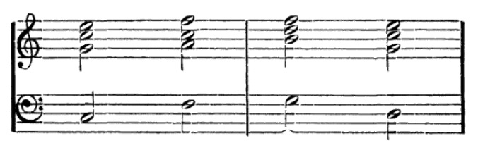 The second remarkable idea belonging exclusively to Cheve" consists in teaching sounds apart from tempo, and vice versa. Any one who once applies this method of instruction will see that what presented itself as an invincible difficulty will suddenly become so easy that the only wonder is that such a simple idea never occurred to any one before. How many torments would have been spared the unfortunate children taught in the Episcopal "chapels" and other choirs, reformed and the like, if the regents had tried this simple thing to compel the beginner, without singing, to beat the time with his finger or a stick according to the notes of the phrase; once for quarters, twice for eighths, and so on; then to sing the same phrase without the time; then again to sing one measure, and then again combining them. For example, this phrase is written: