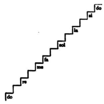 I pass on to a description of the course of instruction in our school. After six lessons the goats were separated from the sheep; only musical natures were left the amateurs and we went on to minor scales, and to the explanation of intervals. The only difficulty was to find and distinguish the diminished second from the second. Fa had already been called healthy; do seemed to them likewise a noisy fellow [58] and so I had no need of teaching them they themselves felt the note into which the diminished second resolved^ therefore they felt the minor second itself.