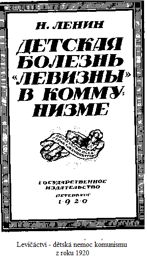 V době svého vzniku roku 1903 navázal bolševismus na tradici nelítostného boje proti maloburžoazní, zpola anarchistické (nebo s anarchismem ochotné koketovat) „revolučnosti“, a tato tradice byla v revoluční sociální demokracii vždy živá; u nás zapustila kořeny zejména v letech 1900-1903, kdy byla v Rusku zakládána masová strana revolučního proletariátu. Bolševismus se pustil do boje proti straně, v níž se nejvýrazněji projevovala tendence k maloburžoazní revolučnosti, totiž proti straně „socialistů-revolucionářů“, a pokračoval v něm ve třech hlavních směrech. Za prvé, tato strana, jež zavrhovala marxismus, za nic na světě nechtěla (lépe snad bude říci: nemohla) pochopit, že před každou politickou akcí je nutné přísně objektivně zhodnotit třídní síly a jejich vzájemný poměr. Za druhé, tato strana spatřovala svou obzvláštní „revolučnost“ neboli „levičáctví“ v tom, že uznávala individuální teror a atentáty, a to jsme my marxisté rozhodně zavrhovali. My jsme však individuální teror zavrhovali jenom proto, že jsme jej nepovažovali za účelný. Vždyť už Plechanov, který byl v letech 1900-1903 ještě marxistou, měl pro lidi, kteří z „principiálních“ důvodů odsuzovali teror Velké francouzské revoluce nebo vůbec teror vítězné revoluční strany obléhané buržoazií celého světa, jenom výsměch a opovržení. Za třetí, „socialisté-revolucionáři“ viděli „levičáctví“ v tom, že se pošklebovali poměrně drobným oportunistickým pokleskům německé sociální demokracie, ale zároveň napodobovali krajní oportunisty téže strany, například v agrární otázce nebo v otázce diktatury proletariátu.