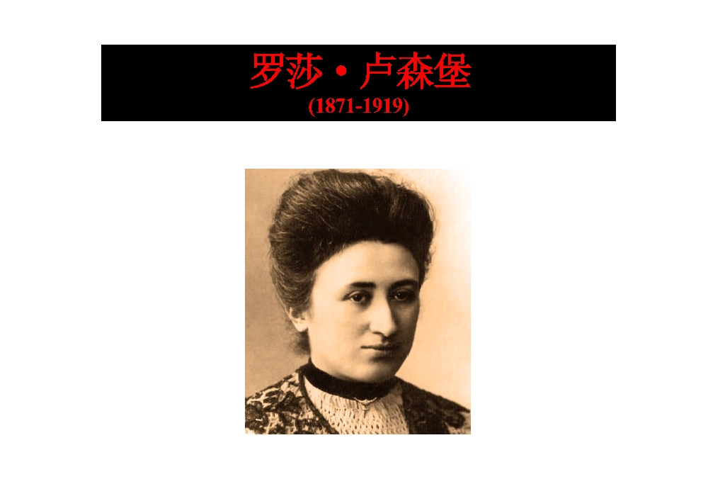 生于波兰的女革命家、马克思主义理论家,在德国社会民主党内坚持与修正主义作不妥协的斗争,后壮烈牺牲于反革命之手。
