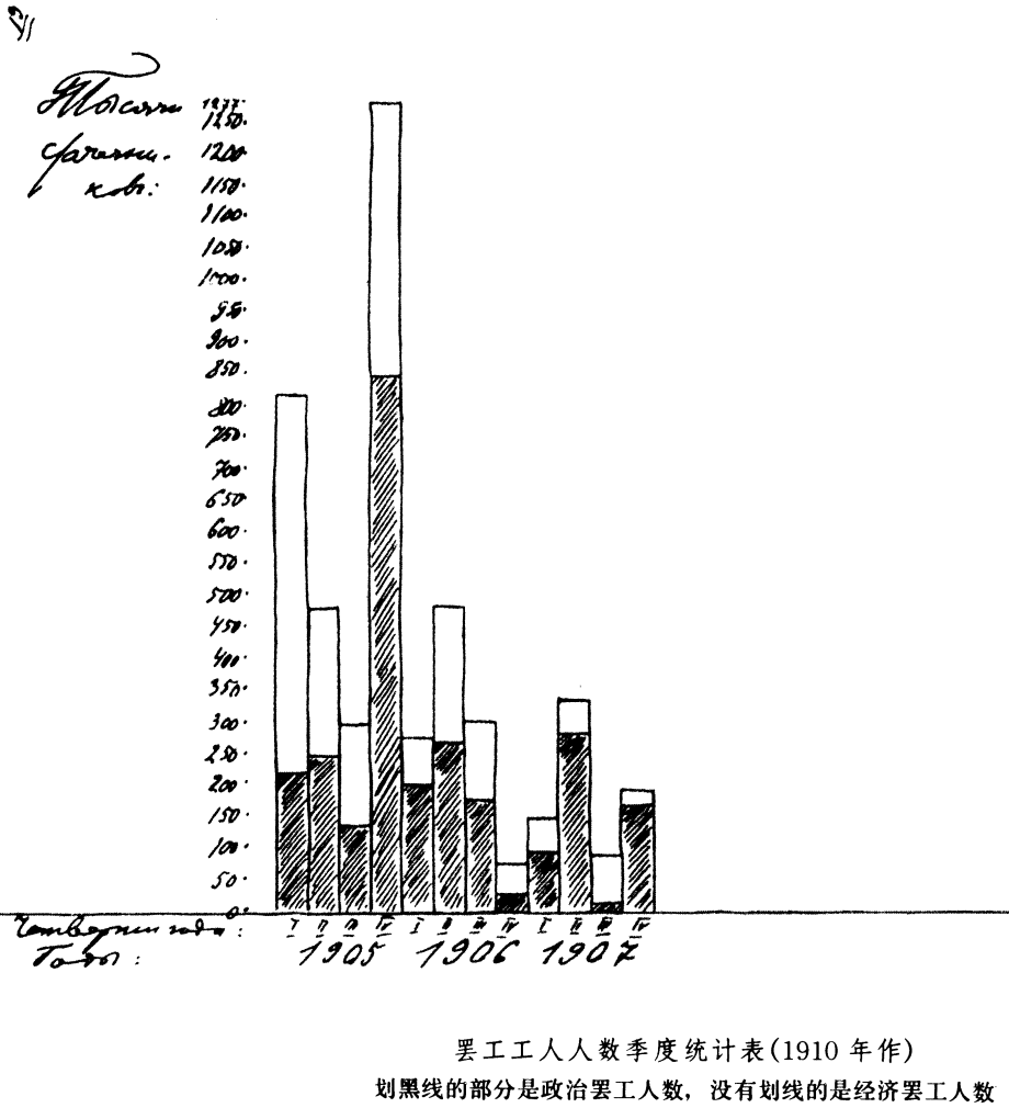 用线条框出的时期是出现最大高潮的时期。从表上一眼就会看到,这些时期与这三年中非常突出的重大政治事件是相吻合的。1905年第一季度——1月9日事件和它的影响;1905年第四季度——十月和十二月事件;1906年第二季度——第一届杜马,1907年第二季度——第二届杜马;1907年最后一个季度的高潮最不明显,这是由于审讯第二届杜马工人代表而发生的11月政治罢工(134000个罢工者)造成的。因此,这三年的最后一个时期,也是向俄国历史的另一阶段过渡的时期,恰恰是一个例外,它证明了下面的规律:如果罢工浪潮的高涨在这方面并不意味着普遍的社会政治高涨的话,那么进一步仔细考察就会发现,罢工浪潮也不存在,而只有个别孤立的示威性的罢工。 ![]() 这三年的规律是,罢工浪潮的高涨标志着国家整个社会政治演进的决定性的转折点。罢工统计清楚地向我们指出了这个演进的主要动力。这当然并不意味着,这种运动形式是唯一的或最高的形式——我们知道,不是这样的——这并不意味着,可以从运动的这一形式出发对社会政治演进的局部问题作出直接的结论。但是这意味着,我们看到一幅代表事态总趋势的主要动力的阶级的运动统计图(当然这幅图是很不完整的)。其他阶级的都围绕着这个中心运动,跟着它走,受它指引或由它决定方向(朝积极的方面或朝消极的方面),以它为转移。 只要回忆一下这三年中俄国政治历史的主要时期,就会确信这一结论是正确的。我们来看看1905年的第一季度。我们在这个季度的前夕看到了什么呢?我们看到了有名的地方自治-宴会运动。把工人在这个运动中的行动看作“高级形式的示威”是否正确呢?关于不引起自由派“惊慌”的言论是否正确呢?把这些问题摆到罢工统计的框子里(1903年:87000人;1904年:25000人;1905年1月:444000人,其中有123000个政治罢工者),那么答案也就清楚了。上述关于地方自治运动的策略的争论,只是反映了自由派运动和工人运动客观上存在的对抗性。 我们在一月[注:从季度材料来看,只有一次高潮。事实上有两次高潮:1月有444000个罢工者,5月有220000个罢工者。这两个月之间,3月份出现最低数,只有73000个罢工者。]高潮以后看到了什么呢?我们看到了有名的二月命令[179],开始对国家机构实行某些改革。 请大家看一看1905年的第三季度。政治史上居于首要地位的是8月6日法令(所谓布里根杜马)。这个法令能不能付诸实施呢?自由派认为,能付诸实施,并且根据这种看法决定推行自己的行动路线。马克思主义者则持相反的观点,这种观点没有得到那些客观上实践自由主义观点的人们的赞同。1905年最后一个季度的事态解决了争论。 从四个季度的数字来看,似乎1905年年底有一个高潮。事实上却有两个高潮,两个高潮之间是一个短短的运动退潮期。10月份有519000个罢工者,其中有328000个纯粹政治罢工者,11月份有325000个罢工者(其中有147000个政治罢工者),12月份有433000个罢工者(其中有372000个政治罢工者)。在历史书刊上发表过自由派和我们的取消派(切列万宁之流)的一种观点,他们认为十二月高潮中有“人为的”因素。统计数字驳斥了这种观点,并且表明纯粹政治罢工的人数恰恰以这个月为最高,达到了372000人。那些迫使自由派作出一定的评价的种种倾向是可以理解的,但是从纯粹科学的观点来看,一个月的纯政治罢工者总数几乎相当于前10年罢工者总数的9/10的规模这样大的运动,即使说它有一点点是“人为的”,也都是荒谬的。 最后,我们来看看1906年春天和1907年春天最后两个高潮[注:应当指出,1895—1904年这十年的俄国罢工历史表明,经济罢工的高潮一般都在每年第二季度。在这十年中间,罢工者每年平均为43000人,而按季度计算:第一季度10000人;第二季度15000人;第三季度12000人;第四季度6000人。1906年春天和1907年春天的高潮并非夏季是俄国罢工的高潮这个“一般”原因所能解释,这只要比较上述一些数字就能一目了然。值得注意的是政治罢工人数。]。这两个高潮同1905年一月高潮和五月高潮(也是前者超过后者)有一个共同的区别,这两个高潮是退却性的,而1905年的两个高潮是进攻性的。一般说来,这也是这三年中后两年和前一年的区别。因此,对于1906年和1907年的上述两个时期数字提高的正确估价应当是:这种提高标志着退却者中止退却并且尝试重新转入进攻。这些高潮的客观意义就是这样,这一点我们现在从整个“狂飙突进的三年”的最终结果来看,已经清楚了。第一和第二两届杜马无非是当下面中止退却的时候上面进行的政治谈判和政治示威。 由此可以清楚地看到,自由派的目光是多么短浅,他们竟把这些谈判看成是某种孤立的、独立的东西,不取决于这样或那样的中止退却的持续时间的长短和导致结果的好坏。由此可以清楚地看到,现在轻蔑地谈论退却时“浪漫主义者的期待”的马尔托夫之流取消派,他们客观上是依附于自由派的。统计数字向我们表明,这里并不是“浪漫主义者的期待”,而是实际上的确存在的退却的中断、退却的中止。要是没有这种中止,那么这个历史上完全的不可避免的1907年六三事件(因为退却仍然是退却),就可能提前一年甚至更早发生。 我们联系政治历史的主要时期对罢工运动的历史进行了考察,现在我们来研究一下经济罢工和政治罢工的相互关系。官方统计提供了有关这个问题的极有意义的资