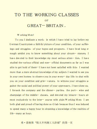 致大不列颠工人阶级[92]工人们! 我献给你们一本书。在这本书里,我想把你们的状况、你们的苦难和斗争、你们的希望和要求的真实情况描绘给我的德国同胞们。我曾经在你们当中生活过一个相当长的时期,对你们的状况有足够的了解。我非常认真地研究过你们的状况,研究过我所能弄到的各种官方的和非官方的文件,但是我并不以此为满足。我寻求的并不仅仅是和这个题目有关的抽象的知识,我愿意在你们的住宅中看到你们,观察你们的日常生活,同你们谈谈你们的状况和你们的疾苦,亲眼看看你们为反抗你们的压迫者的社会的和政治的统治而进行的斗争。我是这样做了。我抛弃了社交活动和宴会,抛弃了资产阶级的葡萄牙红葡萄酒和香槟酒,把自己的空闲时间几乎都用来和普通的工人交往;对此我感到高兴和骄傲。高兴的是这样一来我在获得实际生活知识的过程中有成效地度过了许多时间,否则这些时间也只是在客厅里的闲谈和讨厌的礼节中消磨掉;骄傲的是这样一来我就有机会为这个受压迫受诽谤的阶级做一件应该做的事情,这些人尽管有种种缺点并且处于重重不利的地位,但仍然引起每个人的尊敬,也许只有英国的锱铢必较的商人才是例外;还值得骄傲的是这样一来我就能保护英国人民,使他们不致日益受人鄙视。而来自欧洲大陆的这种鄙视,正是你们国家的当权的资产阶级极端自私自利的政策和全部行为的必然后果。 同时我也有很多的机会来观察你们的敌人——资产阶级,而且很快就确信,你们不希望从资产阶级那里得到任何援助是正确的,是完全正确的。他们的利益和你们的利益是完全对立的,虽然他们经常在企图证明与此相反的说法,企图使你们相信他们衷心地同情你们的命运。他们所做的驳倒了他们所说的。我希望我收集到的材料用来证明下面这件事是绰绰有余的:资产阶级,不管他们口头上怎么说,实际上只有一个目的,那就是当你们的劳动的产品能卖出去的时候就靠你们的劳动发财,而一到这种间接的人肉买卖无利可图的时候,就让你们饿死。他们庄严地宣布过对你们的好意,但是他们做了些什么事情来从实际上加以证明呢?对你们的诉苦他们曾认真地注意过吗?除了负担派来调查你们的状况的五六个委员会的经费,他们还为你们做了些什么呢?而这些委员会的大本大本的报告都永远放在内务部的档案架上的废纸堆里。他们是否打算过从这些日渐腐烂的“蓝皮书”中哪怕编写出一本易读的书,使每一个人都能毫不困难地了解到绝大部分“生而自由的不列颠人”的状况呢?没有,他们当然不这样做;所有这些都是他们不喜欢谈论的事情。他们宁可让一个外国人来把你们所处的屈辱的状况报道给文明世界。 但是我希望,我对他们来说才是外国人,而对你们来说却不是。我的英语也许不很道地,但是,我希望你们将发现它是平易近人的。顺便说一句,无论在英国或是在法国,从来没有一个工人把我当做外国人看待。我极其满意地看到你们已经摆脱了民族偏见和民族优越感。这些极端有害的东西归根到底只是大规模的利己主义[wholesale selfishness]而已。我看到你们同情每一个为人类的进步而真诚地献出自己力量的人,不管他是不是英国人;我看到你们仰慕一切伟大的美好的事物,不论它是不是在你们祖国的土地上产生的。我确信,你们并不仅仅是普通的英国人,不仅仅是一个孤立的民族的成员;你们是意识到自己的利益和全人类的利益相一致的人,是一个伟大的大家庭中的成员。正是由于我把你们当做这个“统一而不可分的”人类大家庭中的成员,当做真正符合“人”这个字的含义的人,所以我和大陆上其他许多人一样,祝贺你们在各方面的进步,希望你们很快地获得成功。 继续像以前那样前进吧!还有许多困难需要克服:要坚定,要大胆,你们的成功是肯定的,你们前进中的每一步都将有助于我们共同的事业,全人类的事业!
