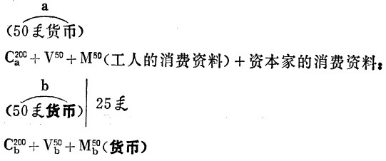 资产阶级的呆痴,在这里暴露得淋漓尽致了!(自杀!)(2) (Ⅰ)消费资料: ![]() (Ⅱ)生产资料: ![]() (生活上必需的消费资料的〔生产资料〕) ![]() (资本家的消费资料的〔生产资料〕)。 在(Ⅰ)项中,我们已考察运动的最简单的形式。现在,我们对其较复杂的形式进行考察,这可以使人们看到,构成Ⅰ和Ⅱ的工业部门不管如何形形色色、五花八门,这也不会改变问题的实质,虽然这种往返运动,以及作为这一运动的媒介的货币流通由此而复杂化了。 首先,我们在Ⅰ中把产品分为两种,从而分为两大生产领域,这就是:(1)工人必要消费资料的生产和(2)资本家的消费资料的生产。从我们在这里提出的目的来看,问题并不会由于下述情况而发生变化:在一定的限度内奢侈品可以进入工人阶级的消费,而另一方面,足够数量的生活必需品要进入资本家的消费,——这就是说,同种产品和同一生产部门的产品会出现在两个部类中。 我们先考察消费和再生产的货币流通媒介。 首先,我们看到在Ⅰ(a)中有300镑的产品充当工人的消费资料。在这个生产领域中,资本家预付50镑货币购买劳动力;工人用这50镑货币从这些资本家那里购买50镑的商品(=V50a)。这50镑只在Ⅰ(a)的资本家和工人之间进行流通。 其次,在Ⅰ(b)中,我们看到有300镑的产品充当资本家的消费资料。资本家预付50镑货币购买劳动力;工人用这50镑货币在Ⅰ(b)中向Ⅰ(a)购买50镑的商品(=M50Ⅰa)。Ⅰ(a)的资本家用这50镑货币购买Ⅰ(b)的产品(=V50b),即供他们消费的Ⅰ(b)类的消费资料。于是,他们用来支付工资的那笔货币资本同时流回到Ⅰ(b)的资本家手中。最后,M50Ⅰ(b)这笔基金是在这一类的资本家之间借助于25镑的货币流通而进行分配的。实际上,V50(Ⅰa)同M50(Ⅰa)相交换。 在Ⅰ中,经过这次周转以后,情况是这样的:Ⅰ(a)的资本家还拥有200镑的必要消费资料(C200a)和再度购买劳动力的50镑货币资本。Ⅰ(b)的资本家还拥有200镑的资本家的消费资料(C200b)、再度购买劳动力的50镑货币资本以及用于这些资本家的收入流通的25镑。C200(a)(Ⅰ)和C200(b)(Ⅰ)应当从产品形式重新转化为这种产品的生产资料。这是通过Ⅰ和Ⅱ之间的流通而实现的。 我们先考察Ⅱα+Ⅱαα,即Ⅱ中由工人消费资料的生产资料构成的那部分产品。 [168]在Ⅱ(αα)中,50镑货币被预付在劳动力上,Ⅱ(αα)的工人用这50镑货币向Ⅰ(a)购买相应数量的消费资料。 这样一来,现在,经过这一交易以后,Ⅰ(a)的不变资本就由C150a商品和50镑货币组成。Ⅰ的资本家用这50镑货币向Ⅱαα购买50镑的商品(=V50Ⅱ)。因此,用于可变资本流通的货币资本流回到资本家Ⅱ(αα)的手里,他们总是用它支付工资。 其次,Ⅱ(α)的资本家把50镑货币花费在劳动力上。工人用这50镑货币向Ⅰ(a)购买商品;Ⅰ(a)的资本家用这50镑货币向Ⅱ(αα)购买商品(=M50αα)。 所以,现在情况是这样。 Ⅱαα的资本家拥有100镑商品(=V50αα+M50αα)。他们还拥有200镑商品(C200),作为他们的可变资本货币形式的100镑货币以及他们的剩余价值借以实现的50镑货币。(他们的剩余价值的货币形式。)Ⅱα的资本家还拥有自己的全部产品,此外,他们还花费了50镑货币,这些货币现在处在Ⅱαα的资本家手中。Ⅱαα的资本家用这50镑货币向Ⅱα的资本家购买50镑商品,这样,Ⅱα的资本家的可变资本流通所必需的货币资本又流回到Ⅱα的资本家手里。 现在我们来看看Ⅱβ和Ⅱββ。 Ⅱββ把50镑货币预付在劳动力上。Ⅱββ的工人用这50镑货币向Ⅰ(a)购买50镑商品。Ⅰ(a)用这50镑向Ⅱ(αα)购买50镑商品。Ⅱαα用这50镑购买Ⅰ(b)的剩余价值50镑。Ⅰ(b)用这50镑向资本家Ⅱββ购买50镑商品,这样,Ⅱββ的资本家的可变资本流通所必需的货币资本又流回到资本家Ⅱββ的手里。 为更明白起见,我们把到此为止完成的一切交易按照我们所考察的顺序列表如下。 在Ⅰ内部的周转完成以后,所呈现出的情况是这样的: (Ⅰ)工人的消费资料: C200a(商品形式)+V50a(货币形式和劳动力形式) +资本家的消费资料: C200b(商品形式)+V50b(货币和劳动力)+用于收入流通的25镑。 因为这里所计算的125镑货币在Ⅰ的内部不断流通,所以我们在考察Ⅰ和Ⅱ之间的交换时,可以把其中的第一类归结为: Ⅰ(a)工人的消费资料:C200a(商品形式) +(b)资本家的消费资料:C200b(商品形式); 因为这是Ⅰ中同Ⅱ发生流通的唯一的商品。 现在先是Ⅰ(a)和Ⅱαα之间发生局部流通。 Ⅱαα先预付50镑购买劳动力。工人用这50镑货币向Ⅰ(a)购买50镑商品;Ⅰ(a)的资本家用这些货币向Ⅱαα购买50镑商品。这样一来,可变资本流通所必需的货币资本重新流回到资本家Ⅱαα的手里。 于是,我们得出: (1)Ⅰ(a)和Ⅱαα之间以及Ⅱαα内部的第一次局部流通![]() 这第一次流通的结果是: Ⅰ(a)工人的消费资料: C150a(商品形式) + C50(αα的生产资料形式=V50αα) Ⅱ(αα)(a)的消费资料的直接生产资料: C200αα(商品)+V50αα(货币)(劳动力)+M50αα(商品)。 [169]最好总是从作为流通起点的循环来开始描述序列。 这样,第一次局部流通的结果可以表示如下: Ⅱ(αα)αα的生产资料。 C200αα(αα的商品)+V50αα(50货币+A)+M50αα(αα的商品)。 Ⅰ(a)工人的消费资料。 C50a(α)(αα的生产资料形式=V50Ⅱαα) + C150a(消费资料形式)。 (2)Ⅱα内部以及Ⅱα、Ⅰ(a)和Ⅱαα之间的第二次局部流通Ⅱα的资本家投入50镑货币作为可变资本;工人用这50镑货币向Ⅰ(a)购买50镑商品。Ⅰ(a)的资本家