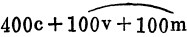 R100(V100)——工人的消费基金。 R100(M100)——资本家的消费基金。 V100——价值100镑的劳动力(V100)。 以及: