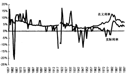 注图中1857~1917年为美国铁路债券;1919~1998年(1998年仅是第一季度)美国国债为:实际利率为名义利率减去年度物价指数(CPI)。