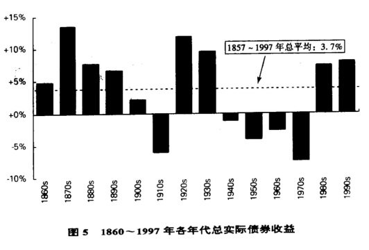 图5 1860~1997年各年代总实际债券收益