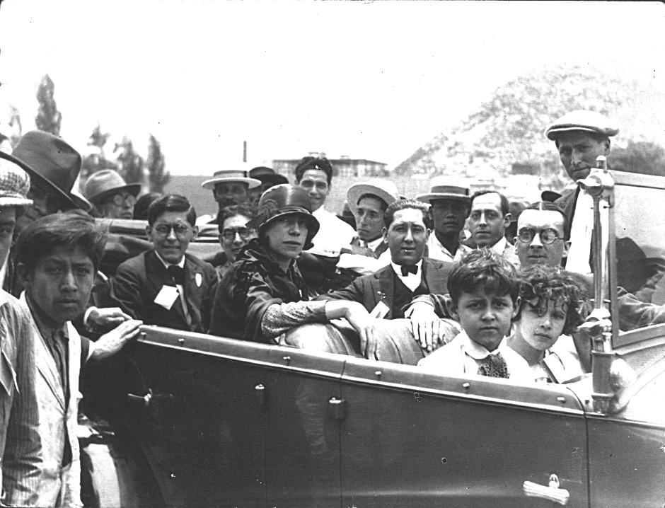 Lima. De izquierda a derecha: n.n., Amalia La Chira de Mariátegui (madre de JCM), Waldo Frank, Anna Chiappe, Hugo Pesce,