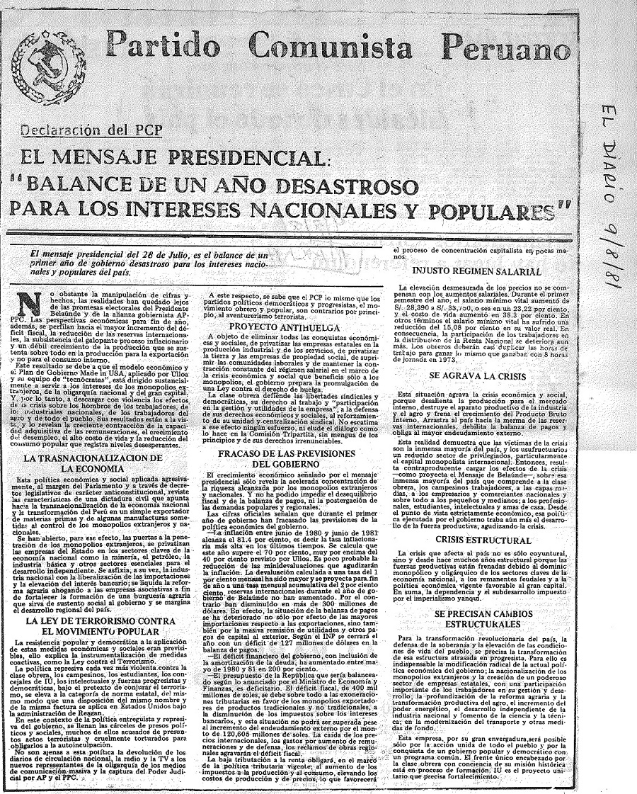 Posición del PCP frente a la propuesta del gobierno (14-6-1981)