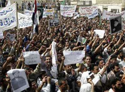 Tens of thousands march through Paris in protest over planned pension reforms, on a national day of public sector strikes June 10, 2003 Write us! Palestinians crowd around a destroyed car after it was hit by an Israeli helicopter gunship in Gaza June 10, 2003. Israeli helicopter missiles killed three Palestinians and wounded 32 in the Gaza Strip on Tuesday in the second such attack in the territory within hours, Palestinian medics and witnesses said. REUTERS/Suhaib Salem Thousands of Shia and Sunni Muslims have marched through Baghdad protesting against the US occupation, and demanding a say in the new Iraqi Government. Photo:Andrea Comas/Reuters French riot police arrest a demonstrator during a protest march, which ended near the National Assembly in Paris, June 10, 2003. Demonstrators and riot police clashed near the French National Assembly, as Parliament opened a controversial debate on a reform plan, that increases the number of years employees must work to get full benefits. REUTERS/John Schults |