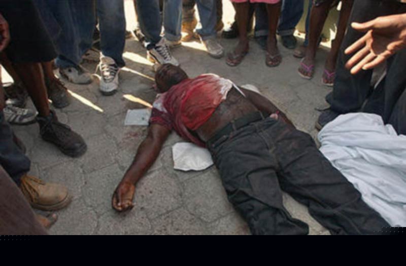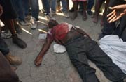 Mutial Telusma, 35, a taxi driver, lies dead on a street near the airport in Port-au-Prince, Haiti on Tuesday March 9, 2004. According to a spokesman for the U.S. Military, U.S. Marines shot and killed Telusma as he was speeding toward a military checkpoint.