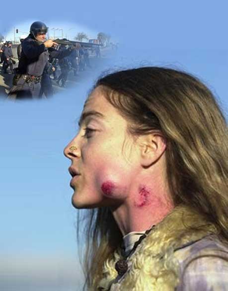 A protester, after she was hit by an Oakland police weapon during an antiwar protest in Oakland, Calif., Monday, April 7, 2003.