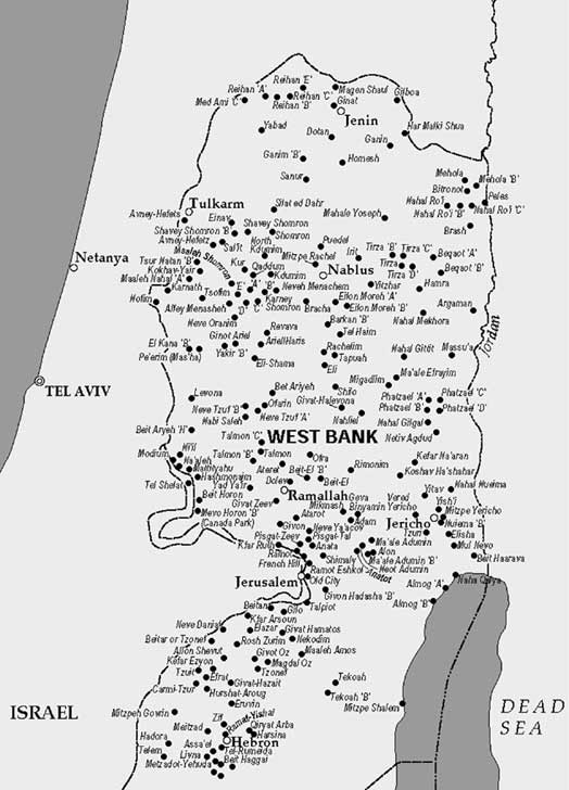 Here you can see the effect of all the corridors. An Arab can hardly go from village to town without crossing a corridorfor which he needs permission. The by-pass roads through the corridors are for Israeli use only. The Palestinian is forced to wait at check point after check point. It is by means of these corridors that the Israelis enforce their lock-downs, their curfews, their sieges. In this current intifada however, the Israelis are finding themselves facing a new contradiction. The more finely they divide up the occupied territories, the greater the periphery they must guard. Every time they divide an Arab area they create one more corridor to defend. And as they divide and divide again, the total population does not change but grows ever more hostile. Advice for America David Makovsky is a well traveled think-tank expert on Middle East policy. He is a former executive editor for the Jerusalem Post (a conservative daily published in Jerusalem), author, and Senior Fellow at the Washington Institute for Near East Affairs. His recommendations are straight to the point: Now the ongoing misery in the region has made it clear that partition remains the only feasible option for resolving the conflict. And as Israels only hope for peace, partition should be pursued whether or not the Palestinians agree to it. After the past several months, something more modest than Oslo is now in order. [ emphasis added] Foreign Affairs, March/April 2001.