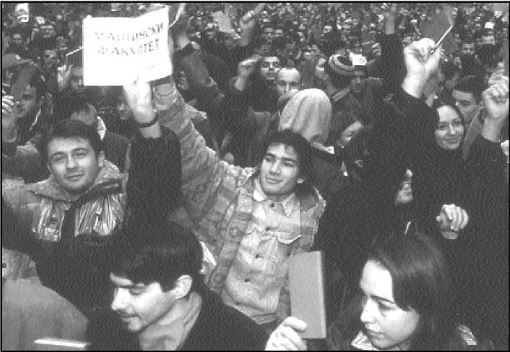 ![]() Anti-Milosevic protesters in Belgrade, 1996 | |