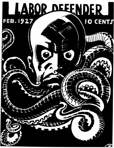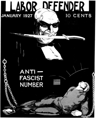 However, combining the personal holdings of original Labor Defender issues belonging to Marty Goodman and those of Holt Labor Library of San Francisco, were were able to scan from original paper roughly half of the issues in the first 3 years (1926 - 1928). Additionally, thanks to the kindness of University of California at Berkeley, we were able to scan bound volumes of original issues of Labor Defender for 1934-1937, thus presenting the rarely seen color covers and use of spot color in interior pages of these issues. Then the Hoover Institution Library of Stanford University kindly and generously helped us out by making for us color scans of covers from many isses in their collection that we did not have access to here, so that now we believe we are presenting here in full color high quality scans of ALL covers of Labor Defender that used color on the cover.
