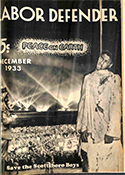 Special Note of thanks to the following individuals and institutions that made copies of the Labor Defender available and help scan and process them for this archive: Dr. Marty Goodman of the The Riazanov Project which produced all of the scans we present here, Rod Holt and David Walters from the the Holt Labor Library, and Tim Davenport of the Early American Marxism Archive. Very special thanks to Paul Thomas of Stanford University’s Hoover Institution Library and Archives who kindly scanned over a dozen original color covers from the Hoover Library's holdings in the period of 1930 - 1933 which we added to our scans, allowing our scans (that were from the black and white Greenwood Reprint series) to show what the covers in that period really looked like.