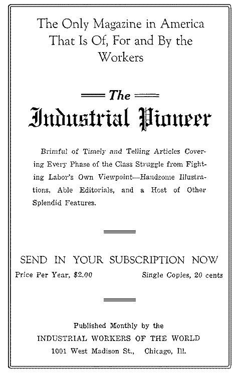 Published by the INDUSTRIAL WORKERS OF THE WORLD1001 W. MADISON ST. CHICAGO, ILL., U. S. A. |