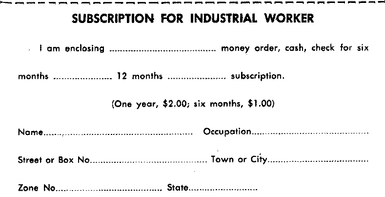 Fill out these forms and either mail to the General Office of the I. W. W., 2422 N. Halsted, Chicago 14, Ill., or turn in to your local I. W. W. office: