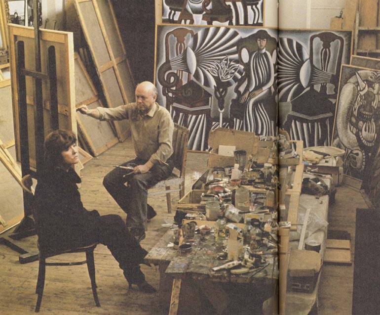 Boris Messerer paints a portrait of his wife, the famous poet Bella Akhmadulina. (circa 1980s) |