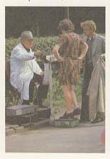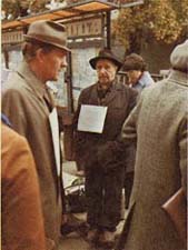 A pensioner spends his time weighing people in the park, picking up a little suplemental income. (circa 1980s) |