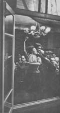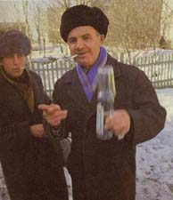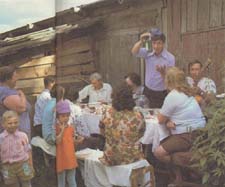 A boisterious family celebrates a birthday at their dacha. (circa 1980s) |