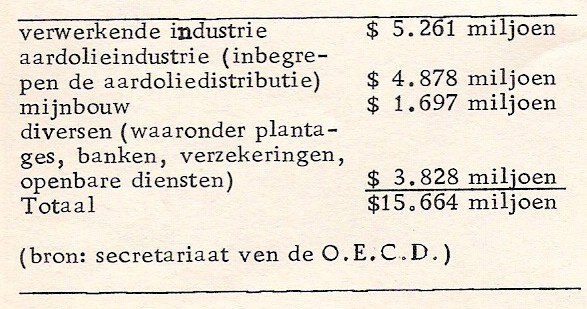 In de loop van de laatste vijftien jaar heeft er een belangrijke verandering plaatsgevonden op het gebied van de investering van imperialistische kapitalen in Latijns-Amerika. Terwijl vanouds de grondstoffen leverende sector de voorkeur had, werd in deze jaren een betrekkelijke meerderheid van het imperialistische kapitaal geïnvesteerd in de sector van de verwerkende industrie. Deze verandering is zo duidelijk dat sinds eind 1966 de post “verwerkende industrie” de voornaamste plaats is gaan innemen bij de buitenlandse privé-kapitalen die in Latijns-Amerika waren geaccumuleerd en die in dat jaar als volgt waren verdeeld: