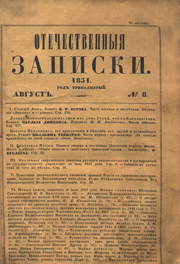 (1820-1884): Revista político-literária. Começou a ser editada em Petersburgo em 1820. A partir de 1839 torna-se a melhor revista progressista daquele período; nos anos 60 a revista uniu à sua volta a intelectualidade revolucionária democrática. A revista era alvo de perseguições contínuas por parte da censura, e foi encerrada pelo governo tsarista em Abril de 1884.