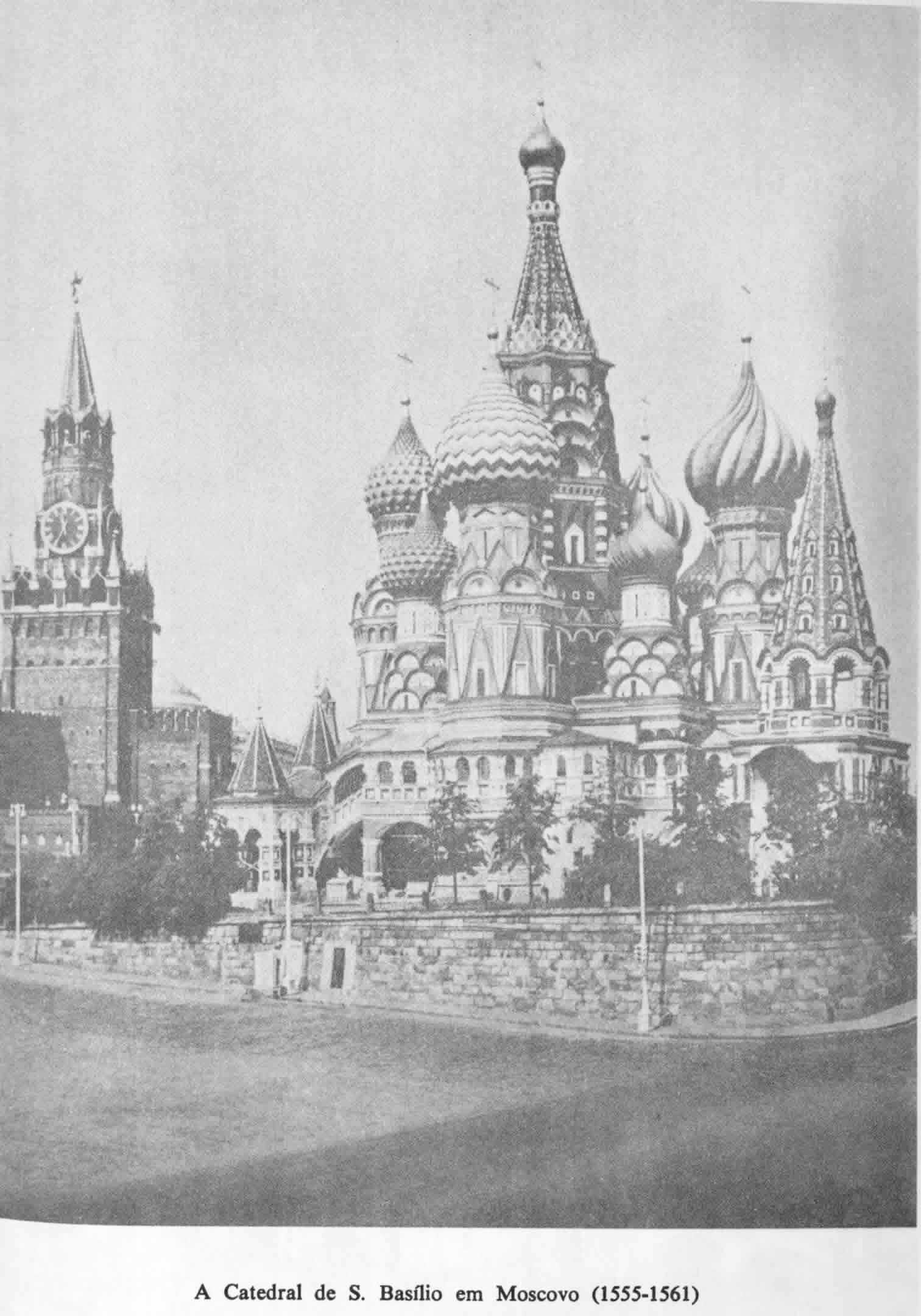 Muitos dos edifícios construídos durante esse período iam-se tornar exemplos famosos da arquitectura russa. Incluem a magnífica catedral de S. Basílio que ainda hoje valoriza a Praça Vermelha. A igreja foi construída por ordem de Ivan, o Terrível, para comemorar a tomada de Khazan. Consiste num grupo de torres de capelas coroadas por cúpulas; todas as capelas estão ligadas por meio de passagens abobadadas e têm galerias em volta das paredes. Cada uma das cúpulas está decorada de maneira diferente, com padrões em ziguezague e ondulados. No entanto, todas se harmonizam num todo encantador e inimitável que é um prazer contemplar.