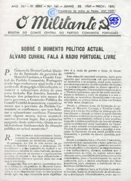 “O militante” nasceu para apoiar o trabalho de construção do PCP na clandestinidade, com conteúdo essencialmente dirigido a quadros e militantes do Partido e visando a elevação da sua preparação política e ideológica. O primeiro exemplar data muito provavelmente de 1933, então com a designação de Boletim do Secretariado, mas foi na sequência da reorganização de 1940/41 que se tornou num instrumento imprescindível à acção revolucionária do Partido.
