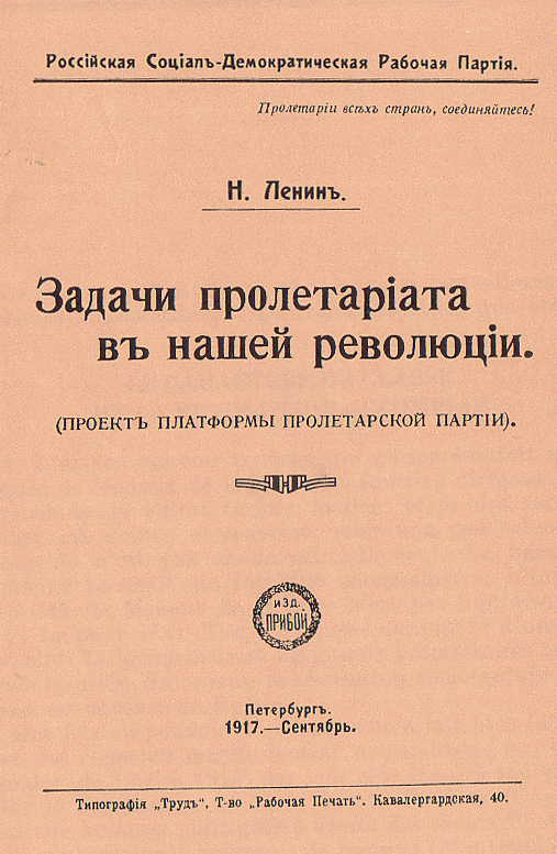 Broşura a fost scrisă ca un proiect de platformă pentru propagarea concepţiilor mele în ajunul conferinţei din Rusia a partidului nostru, Partidul Muncitoresc Social-Democrat din Rusia al bolşevicilor. Multiplicată la maşina de scris şi împărţită în cîteva exemplare membrilor partidului, înaintea şi în timpul conferinţei, broşura şi-a făcut, într-o măsură oarecare, efectul. Acum însă, conferinţa din 24—29 Aprilie 1917 a şi avut loc, rezoluţiile au şi apărut de mult (vezi anexele la Nr. 13 al ziarului. „Adevărul soldăţesc“), şi cititorul atent îşi va da lesne seama că unele părţi ale broşurii mele constituie proiectul iniţial al acestor rezoluţii.