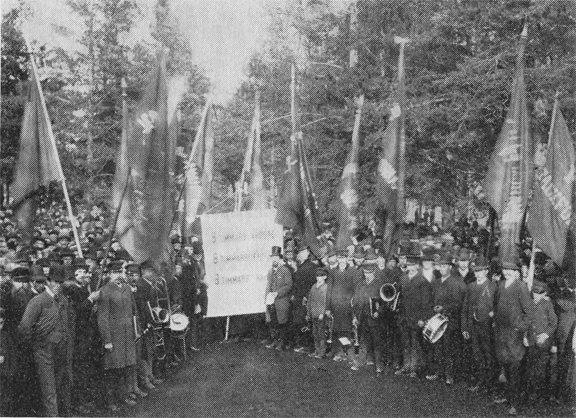 Första maj firades första gången 1890 - här en bild från Sundsvall, där Axel Danielsson var med. |