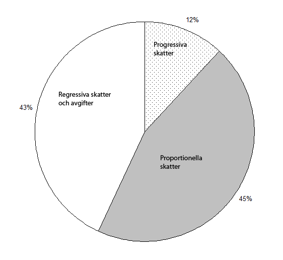 Det finns slutligen regressiva skatter som tar mest från de som i procent räknat har det sämst. Hit hör de indirekta skatterna, som moms, och de allra flesta avgifter.